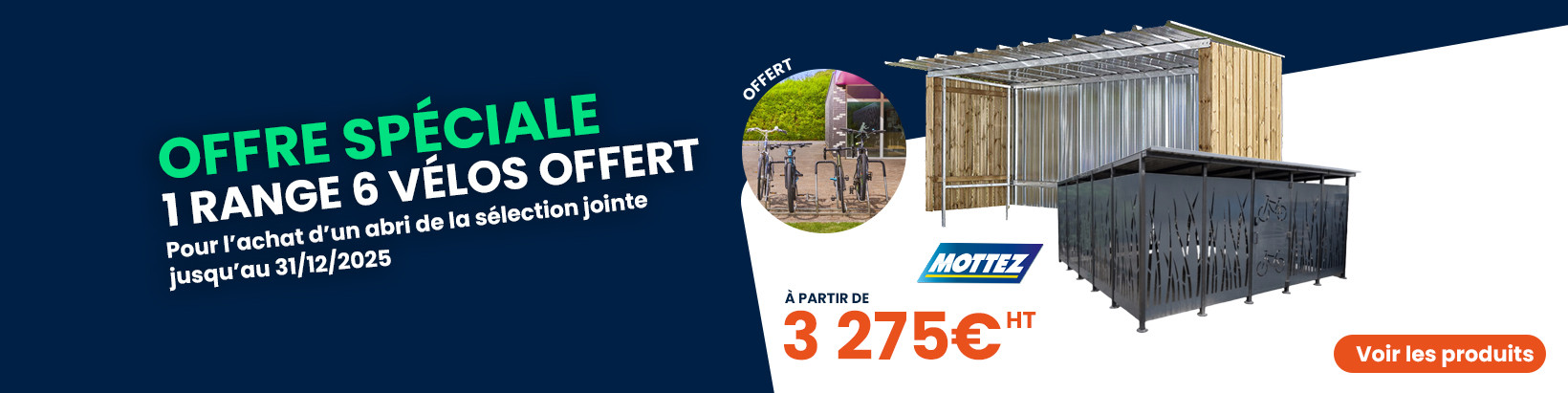 Le mobilier urbain : bancs publics, barrières de ville et potelets, bornes anti stationnement et bornes anti bélier, étriers de protection, tables de pique-nique, jardinières, protections d’arbres, fontaines, rangements pour vélos et trottinettes, abris à vélos, abris voyageurs, poubelles de ville, etc.